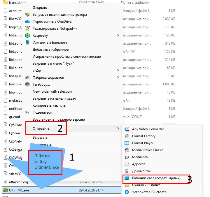 UltimMC на рабочий стол, чтобы потом быстро запускать игру.
