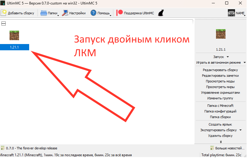 Запустите лаунчер UltimMC.