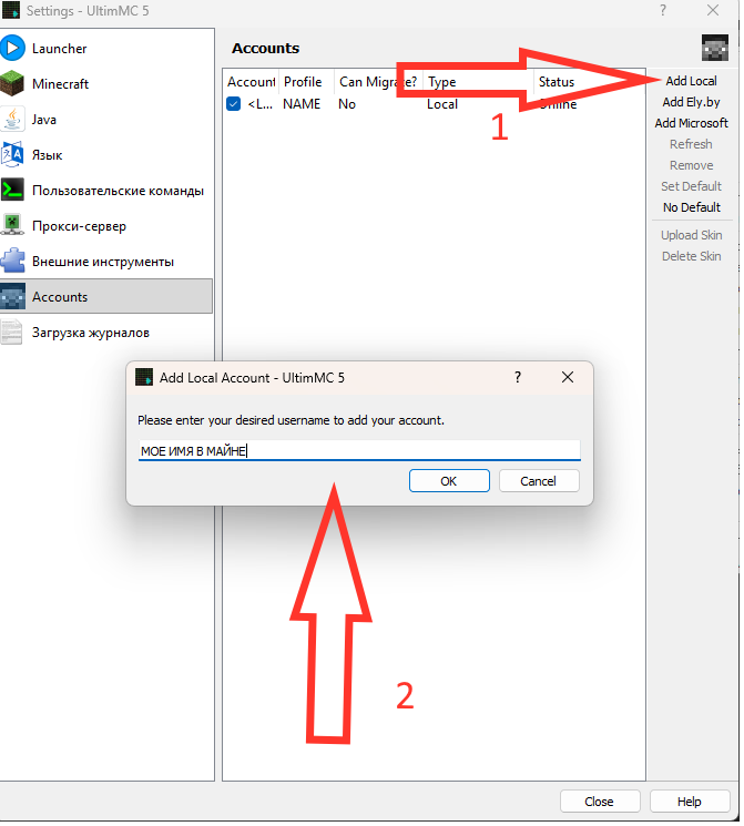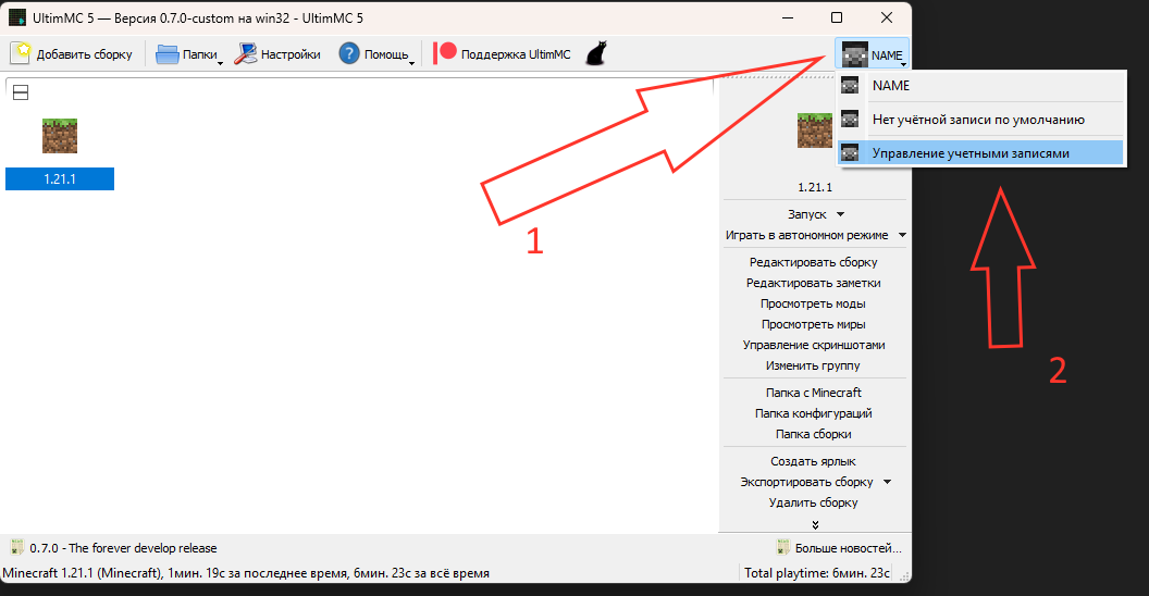 Шаг 2. Запускаем UltimMC